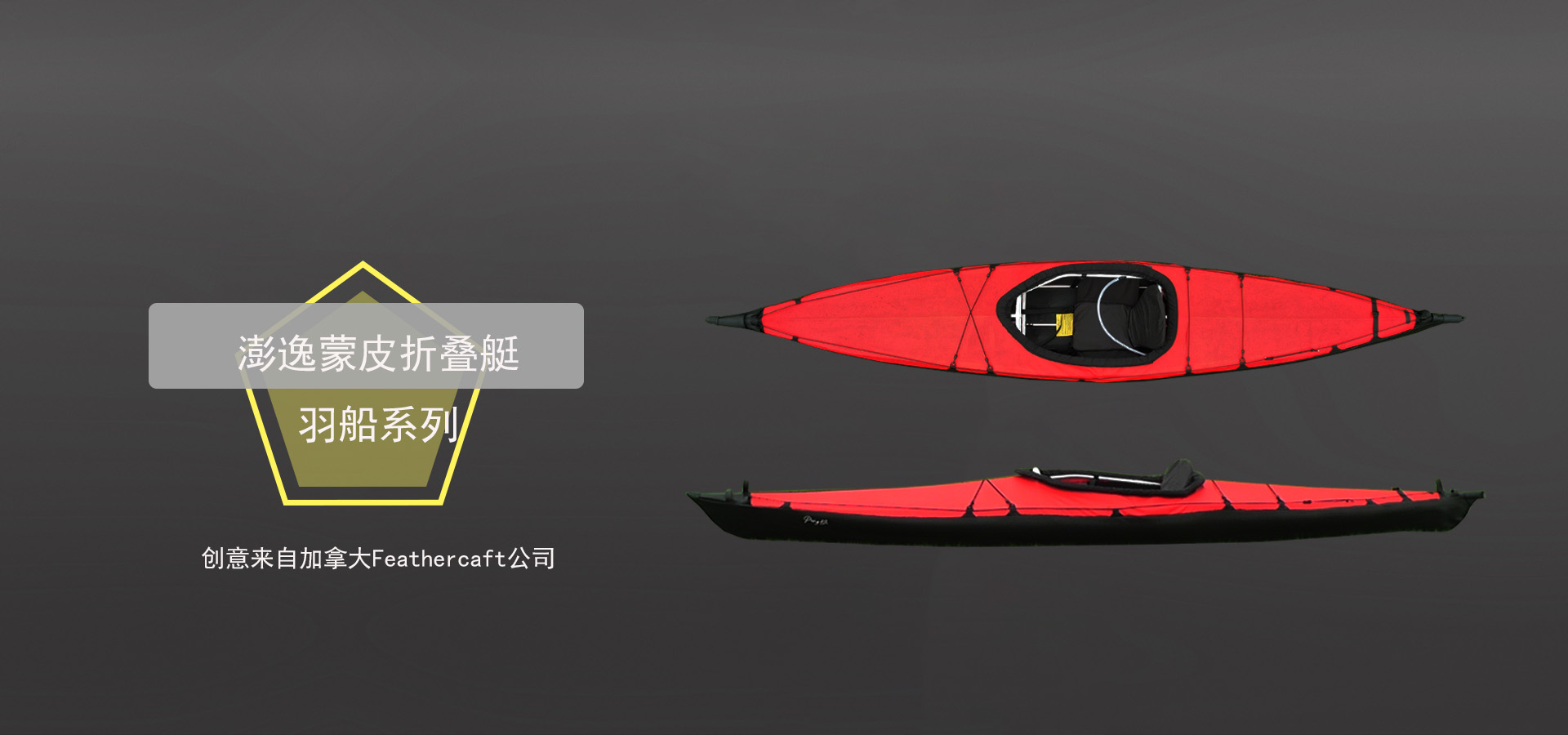 苏州澎逸运动用品有限公司定向开发的羽船系列产品,是一款全水域使用的皮划艇,使用铝合金框架加蒙皮工艺制作而成。收纳体积小,强度高,可以适用于静水,2级白水以及海洋探索使用。羽船39:艇长3.9米,宽度60cm。艇净重13.2公斤,收纳体积80*45*30厘米。包装重量15公斤。羽船45:艇长4.5米,宽度60cm。艇净重15公斤,收纳体积90*45*30厘米。包装重量18公斤,可以携带上飞机,高铁,地铁,公交,非常方便的放入汽车后备箱。做到了艇随车行,游山玩水,探索更大的世界。